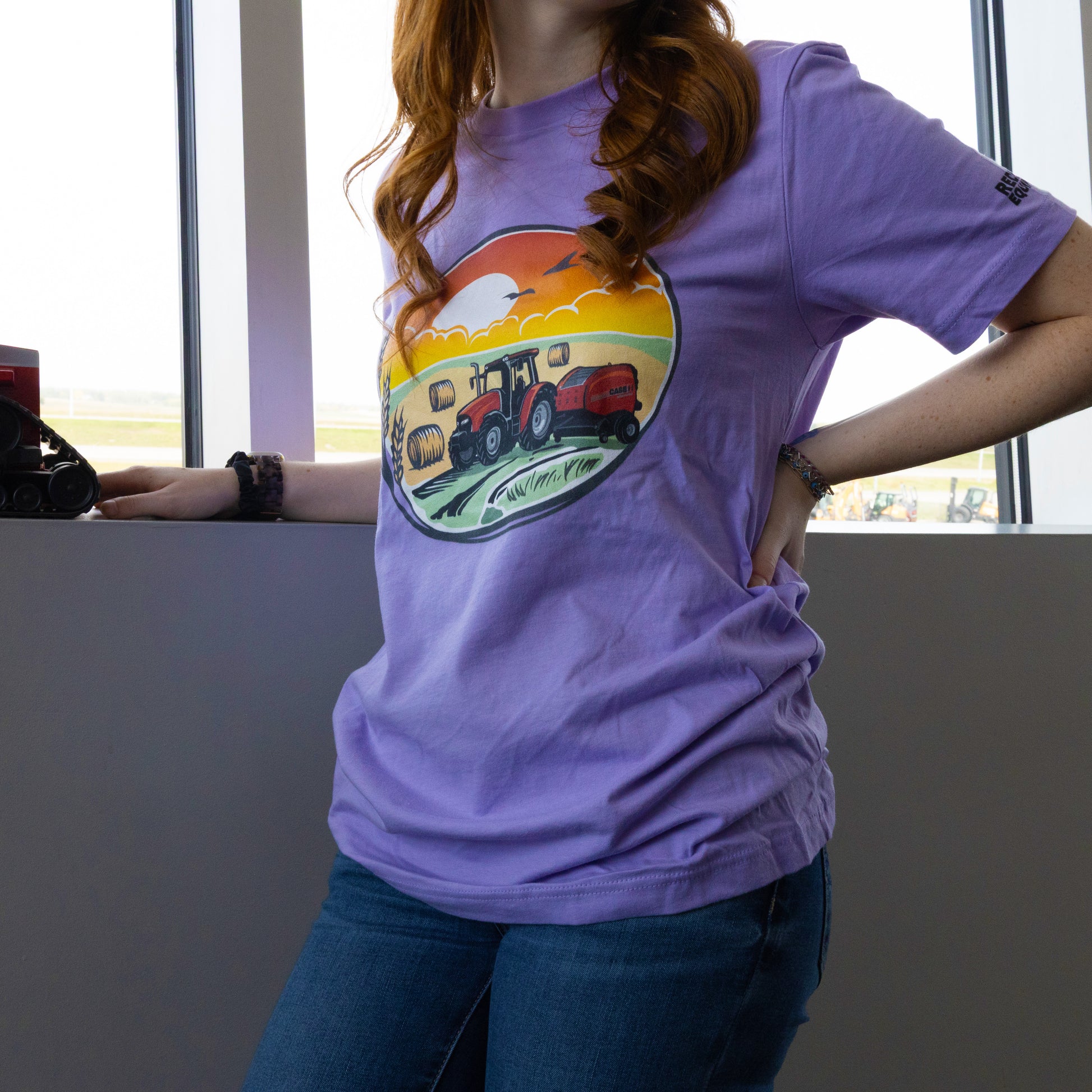 Celebrate the charm of farm life with this playful Baler T-Shirt featuring a vibrant sunset backdrop. Available in black or purple, the shirt showcases a detailed baler image that pops against the warm hues of the setting sun. Perfect for adding a splash of countryside fun to your casual wardrobe.