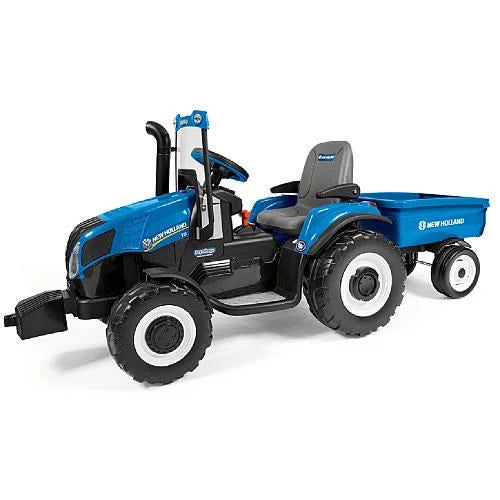 Get ready to play on the farm with the Blue New Holland Tractor and Trailer! This 12-volt tractor features a working FM radio, detachable trailer, and a 2nd gear lockout for beginning riders. With high traction wheels, adjustable seat, and fun design details, this tractor will provide endless hours of entertainment and help little ones feel like real farmers. Recommended for children 3 and up.