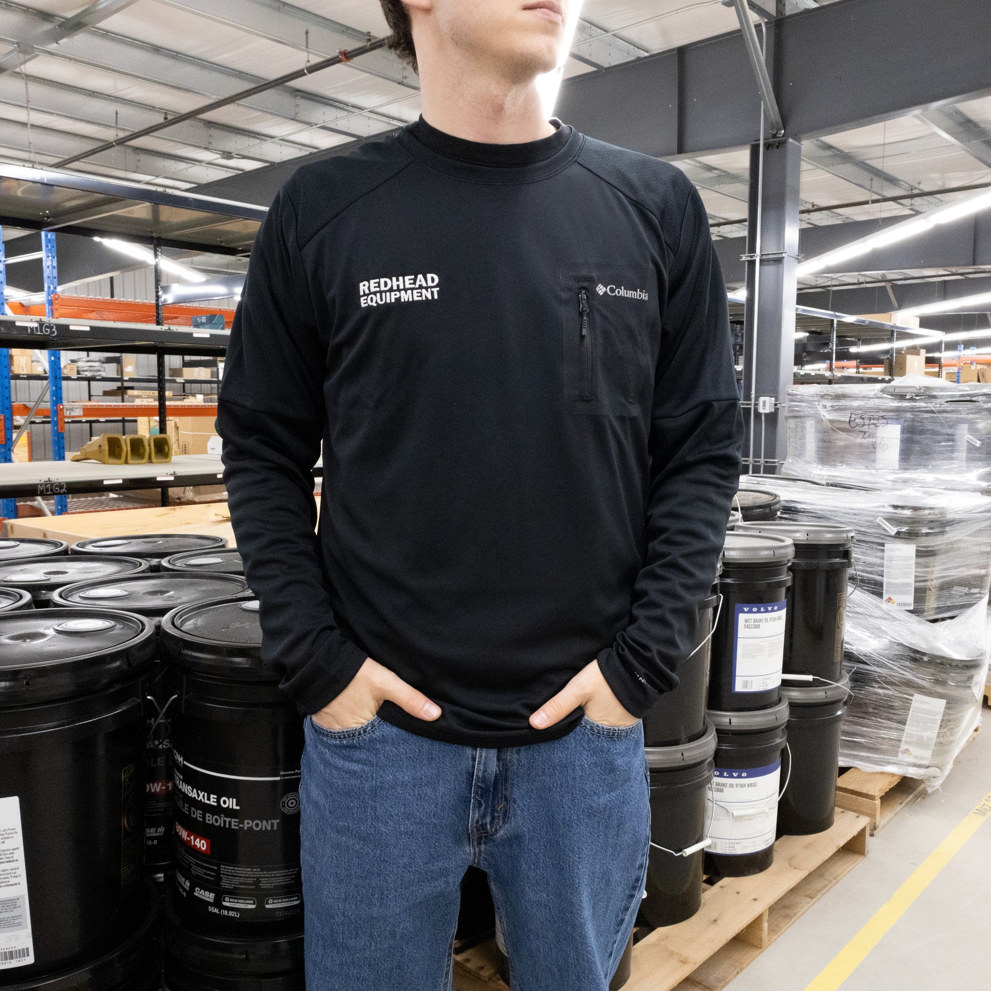 Rock the trails in style with this Columbia Tech Long Sleeve, featuring the iconic Redhead Stacked Logo proudly displayed on the left chest. Built with Columbia's advanced moisture-wicking technology, this black longsleeve keeps you dry and comfortable whether you're hiking, working, or just hanging out. The sleek design pairs performance with that unmistakable Redhead Equipment flair—because looking good and staying functional shouldn't be mutually exclusive. Perfect for layering or wearing solo, this versatile piece is ready for whatever adventure comes your way.