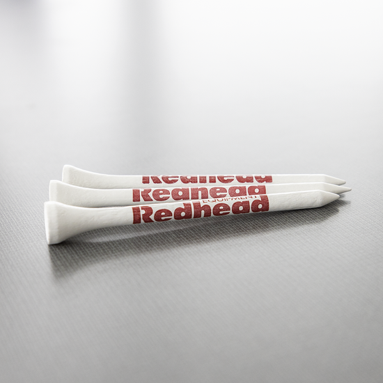 Wooden tees are designed specifically for use with today's large-volume drivers. These come equipped with the Redhead Equipment logo.