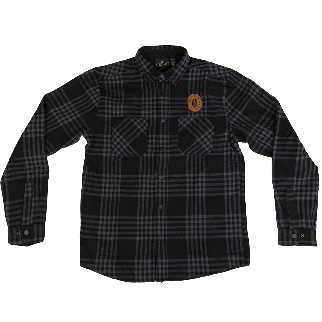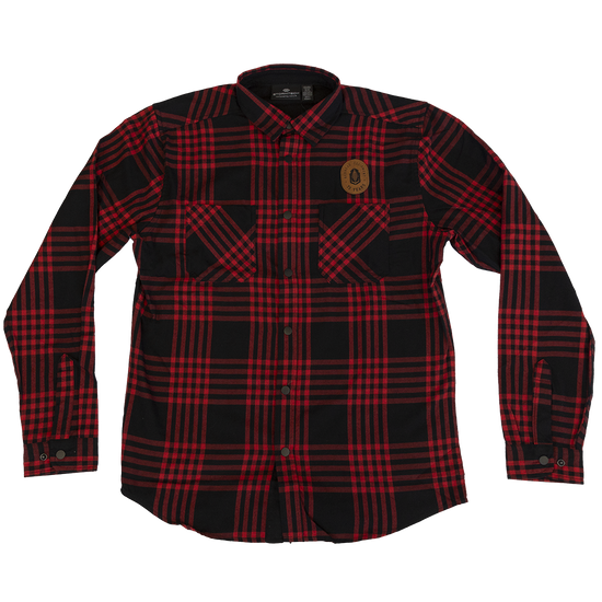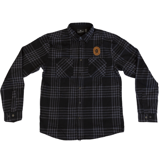 Stay warm and stylish with our Leather Patch Flannels. Featuring a full front button closure, double chest pockets, and flat felled side seams. The contoured hem and cuff placket with snaps add a modern twist to this classic design. Made with a 60/40 cotton-poly blend for ultimate comfort.