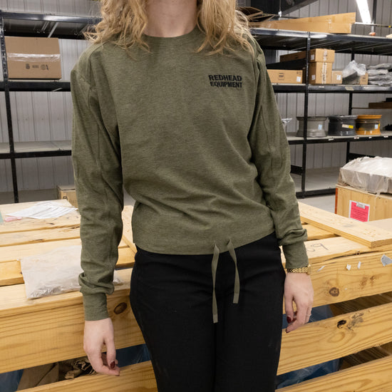 Stay cozy and rep the Redhead crew with this vibrant green long sleeve tee. Featuring our iconic stacked logo proudly displayed on the left chest, it's the perfect way to show your gear pride. Soft, breathable fabric keeps you comfortable whether you're out on the job site or just hanging around town. A wardrobe essential that blends style with that unmistakable Redhead spirit.