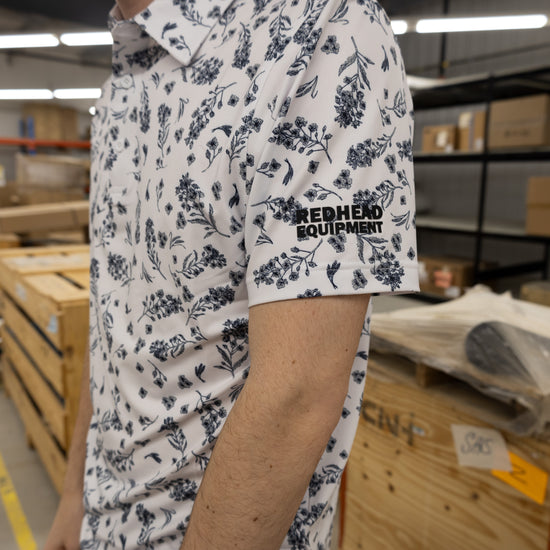 Celebrate the spirit of the Prairies with the Men's Prairie Golf Polo. Adorned with canola flowers and wheat strands and a Redhead logo on the chest. Crafted for comfort, its lightweight, moisture-wicking, 4-way stretch fabric keeps you cool and dry, whether on the green or out and about. This polo is set to become your new favorite go-to!