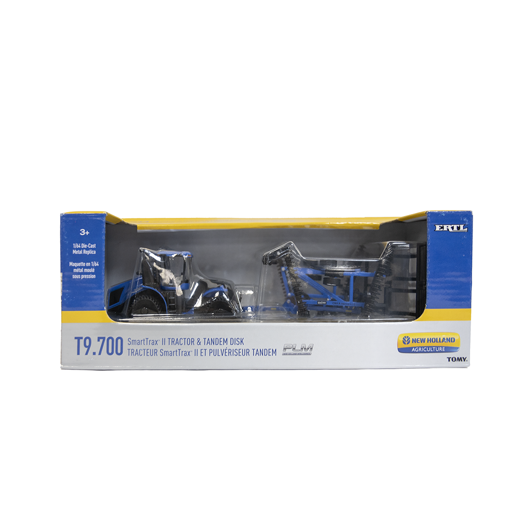 This New Holland T9.700 SmartTrax II with PLM Intelligence & Folding Disc Toy is made for the little farmer in your life! This die-cast 2-piece set includes a tractor, plus a fun folding disc for true outdoor fun. With this set, your little worker can recreate traditional New Holland decoration with side panel logo and graphics. Kids aged 3+ will love the free rolling tracks and rear hitch!
