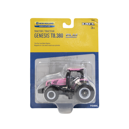 Be the envy of the farm with this one-of-a-kind Pink New Holland Genesis T8.380 Tractor! With its unique pink paint scheme and die-cast body and cab frame, you won't find another like it! Rear duals, clear cab windows - no matter the job, you'll be doing it in style. Time to go "hog wild!"