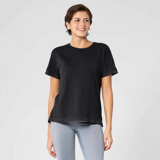 The Tulip Short Sleeve combines comfort with contemporary style. Available in white, black, blue, or pink, this shirt features a stacked logo on the sleeve and a relaxed drop shoulder silhouette. The open pleat design at the center back adds movement and visual interest, while contrast semi-dull woven trim at the sleeve openings and body hem provides a refined finishing touch. Crafted from a breathable 65% polyester and 35% cotton blend, it's designed for all-day wear.